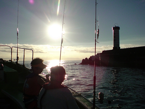 久し振りのオフショアーです。 クジラくんがお出迎え。(^O^) 船首の鳥山は狙えないので、横で沈めてみると・・・ 子供で〜す。 でも・・・随分と食べ応えがあります。 |
