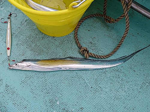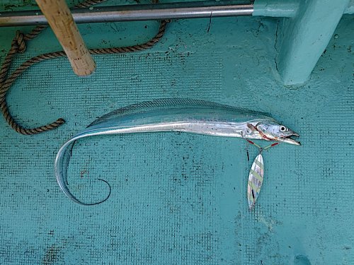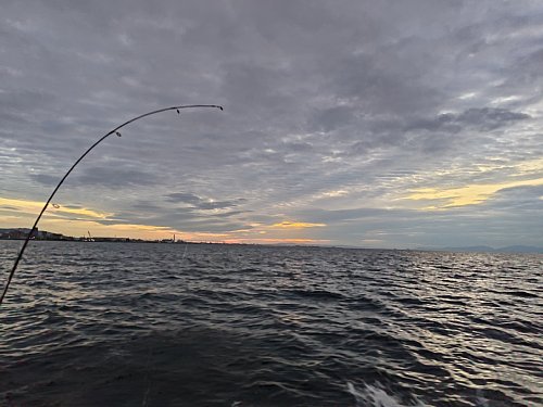 またまた神戸沖 今回は久しぶりの須磨から ここの船宿は集合場所と時間が特殊で ピンポイントな10分の間に集合しないといけないです・・・(多分、7年ぶり?) ![]() 先ずは潮が緩いので、太刀魚から ![]() ![]() 底まで落として、10mまでで、一投毎にヒットが続く イメージは軽くしゃくり上げた時に、リアフックにのる感じ ![]() ワイヤーリーダーの使用を事前に聞いていたら、あまり反応が良くなかったので・・・ 今回は短めの10cmを使用 そのせいか、大きくしゃくり上げた後のリーダー切れルアーロストが3回(やっぱり20cmは欲しいなぁ〜) 日が昇り、9時頃から渋い時間帯に突入 簡単に口を使わないので、グロー系でネチネチとスロージョギング的な動かしで、釣果を追加する ![]() 18匹まで釣った所で、10時30頃から青物狙いに移動 ![]() 橋下は魚影反応が無いのか? 流れは速いが、いつもの早さに比べると緩いので、口を使わないのか? ![]() 4〜5回流して移動 ![]() イメージですが・・・ ここの船宿は根がかりの少ないラインのみ船を流すので、条件が悪いと厳しいかもね 移動先でも反応がないので・・・ 早引き!! すると小さなサゴシが釣れて直ぐに終了で〜す ![]() ![]() |